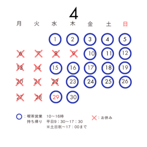 Home news&media 2026.03.26 News 4月の営業について 毎週月曜・火曜日と、8日22日の水曜日、9日の木曜日 にお休みをいただきます。 4月は桜や菜の花を店内からもお楽しみいただけます。 19日には近くで菜の花まつりもあります。 ぜひドライブがてらお立ち寄りください。